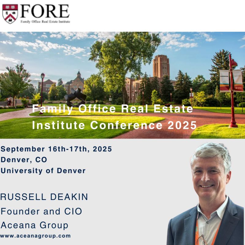 Russell Deakin, Founder and CIO of Aceana Group, attended the 2025 Family Office Real Estate (FORE) Institute Annual Conference, which took place on September 16–17, 2025, at the University of Denver.
