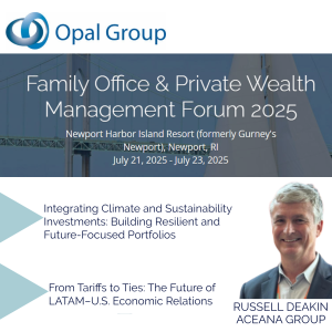 Russell Deakin, Founder and CIO of Aceana group on July 22 will be speaking at the Family Office & Private Wealth Management Forum 2025, hosted by Opal Group, at the Newport Harbor Island Resort in Newport, RI, taking place from July 21–23.