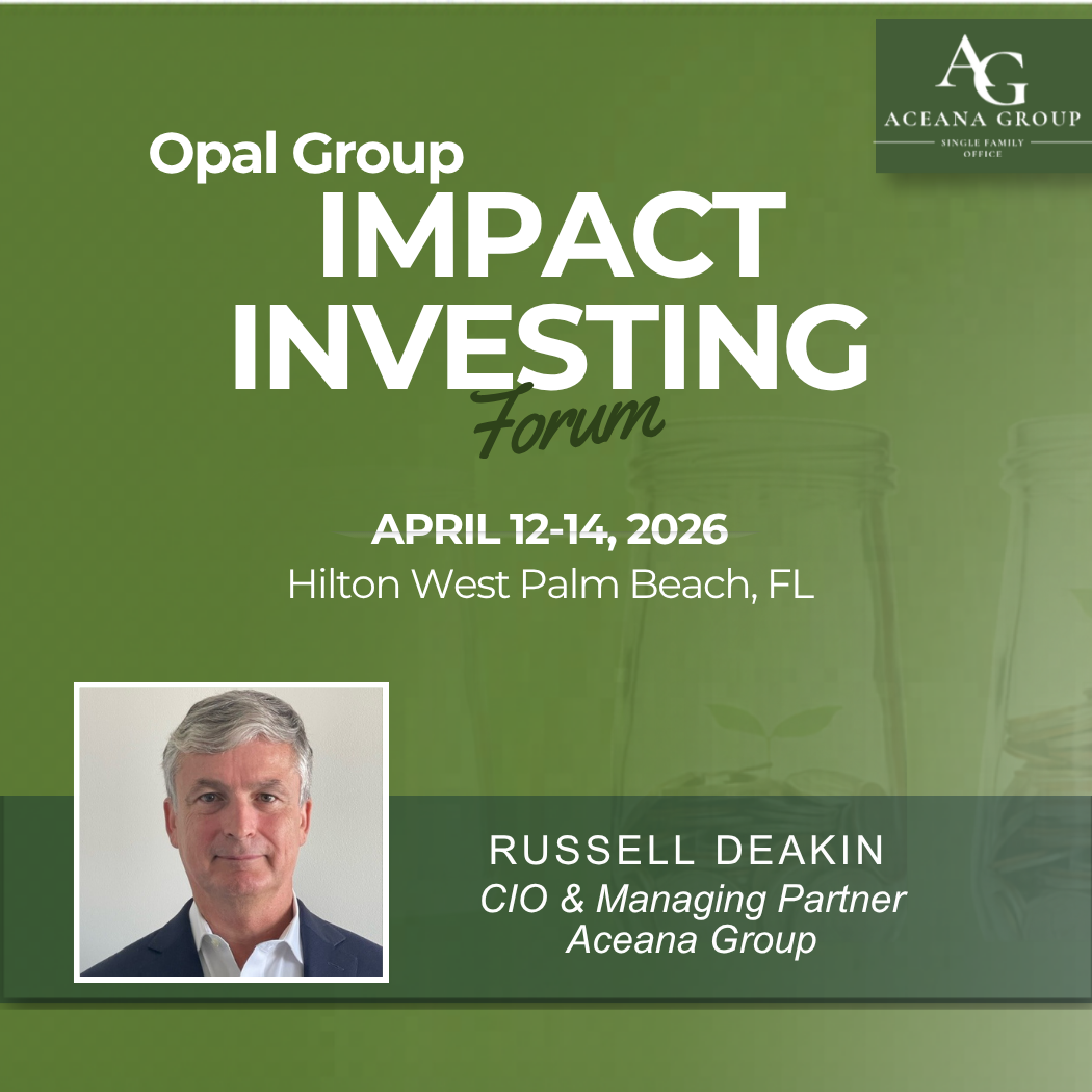 On April 12–14, Russell Deakin, CIO and Managing Partner of Aceana Group, will be attending the 12th Annual Impact Investing Forum by Opal Group at Hilton West Palm Beach, FL.
